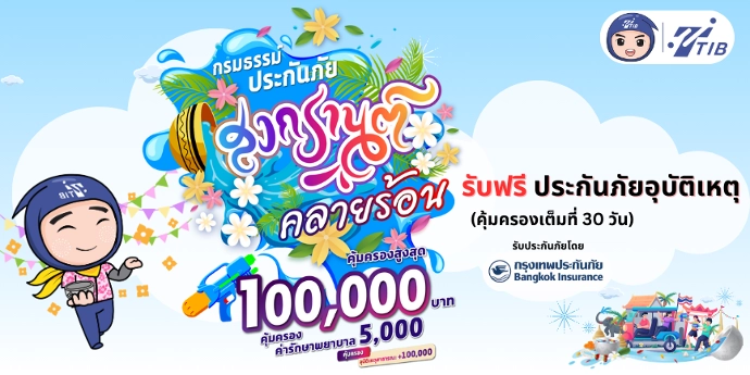 รับฟรี! ประกันภัยอุบัติเหตุ คุ้มครอง 30 วัน (ไมโครอินชัวร์รันส์) ช่วงเทศกาลสงกรานต์ 2568 รับประกันภัยโดย บมจ.กรุงเทพประกันภัย คุ้มครองสูงสุด 100,000 บาท