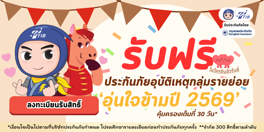 รับฟรี! ประกันภัยอุบัติเหตุ คุ้มครอง 30 วัน (ไมโครอินชัวร์รันส์) ช่วงเทศกาลปีใหม่ 2569 รับประกันภัยโดย บมจ.กรุงเทพประกันภัย คุ้มครองสูงสุด 100,000 บาท